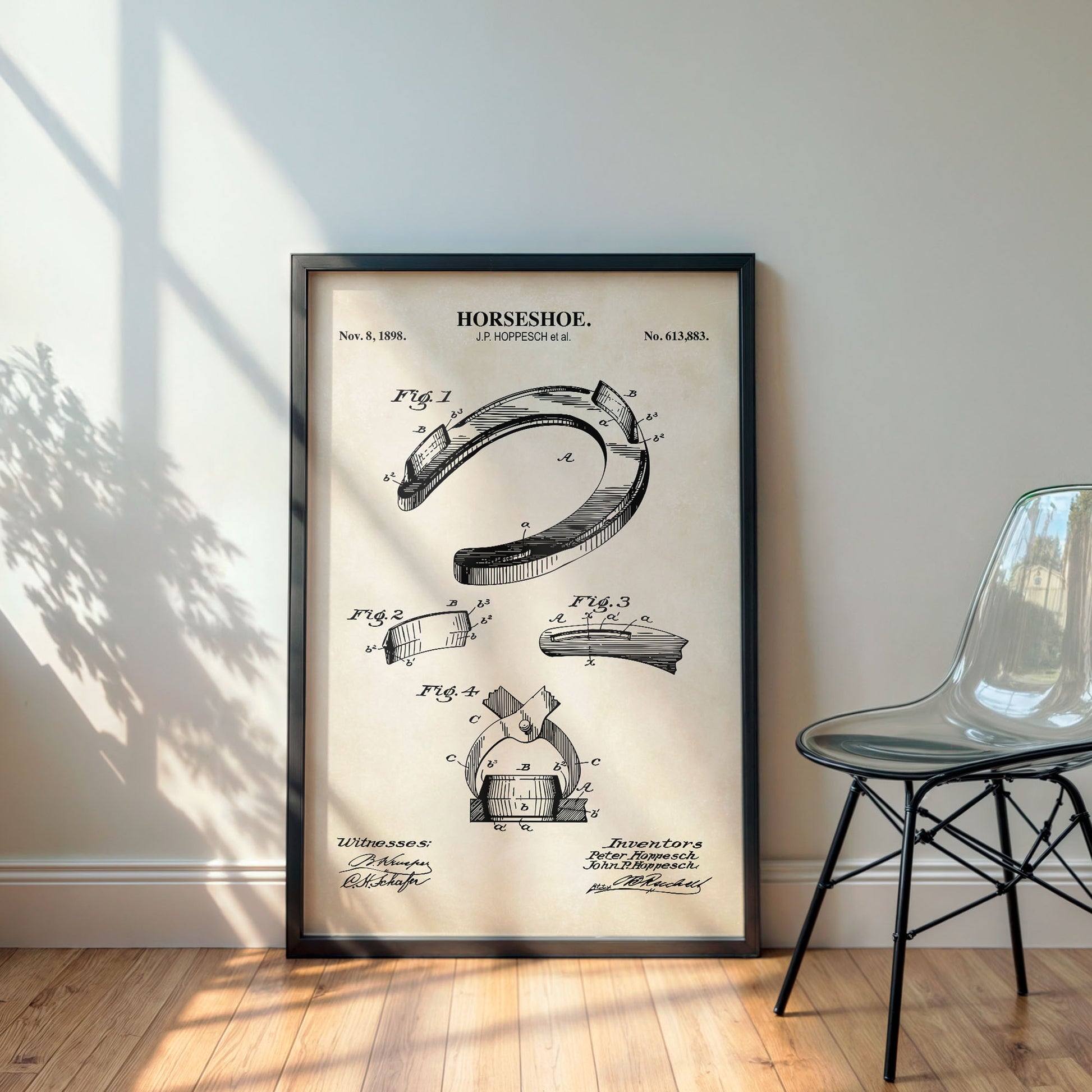 PRINTABLE WALL ART includes one(1) horseshoe print. Featuring a carefully restored, high-resolution illustration from an original patent, this digital download is a timeless piece for any equestrian or horse lover. The artwork has been expertly enhanced to bring out fine details and preserve the vintage character, ensuring a clear, beautiful print. Instant download for easy at-home printing or with your favorite print shop.