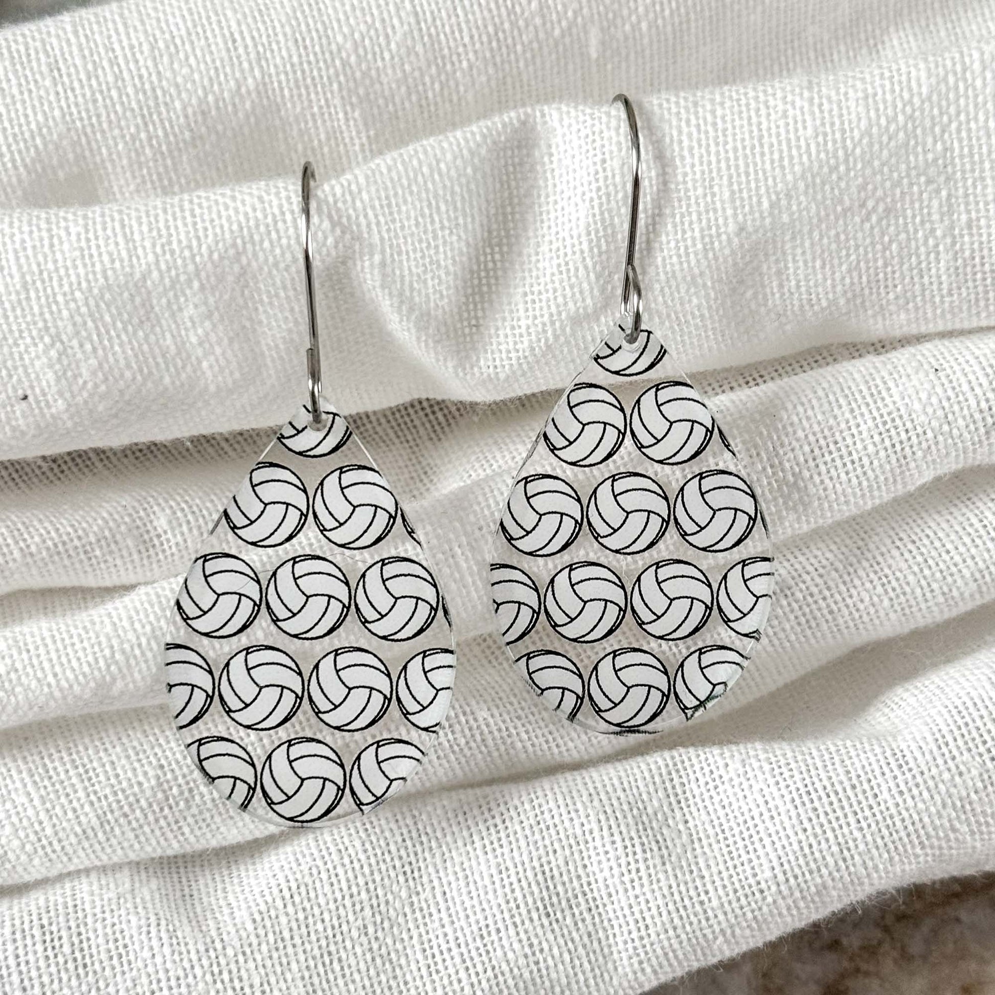 Lightweight volleyball earrings featuring a clean, modern volleyball pattern—the perfect accessory for athletes, fans, and coaches alike. These stylish sports earrings add a subtle, everyday way to show your love for volleyball on and off the court.