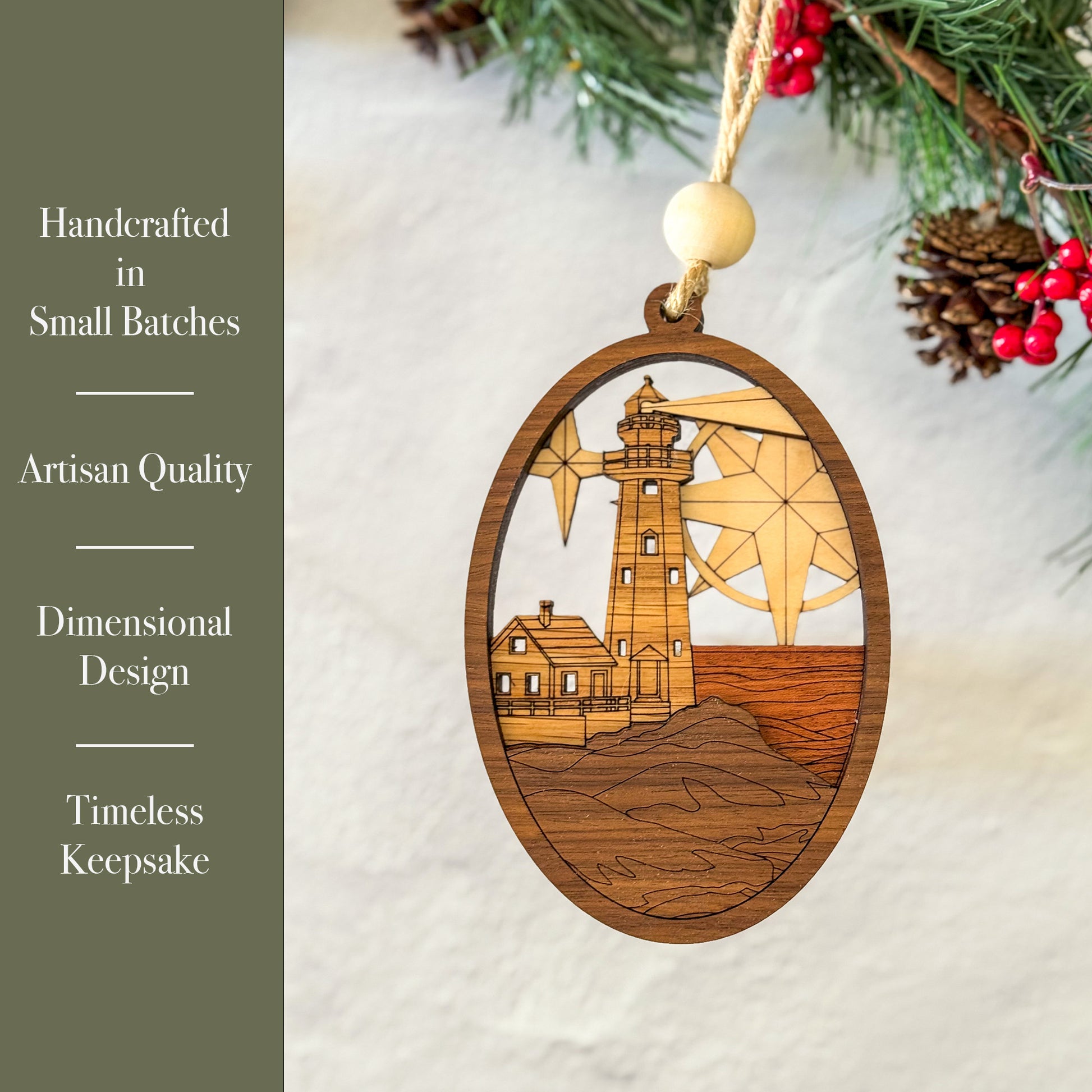 Wood Lighthouse Ornament | Handcrafted Coastal Christmas Décor