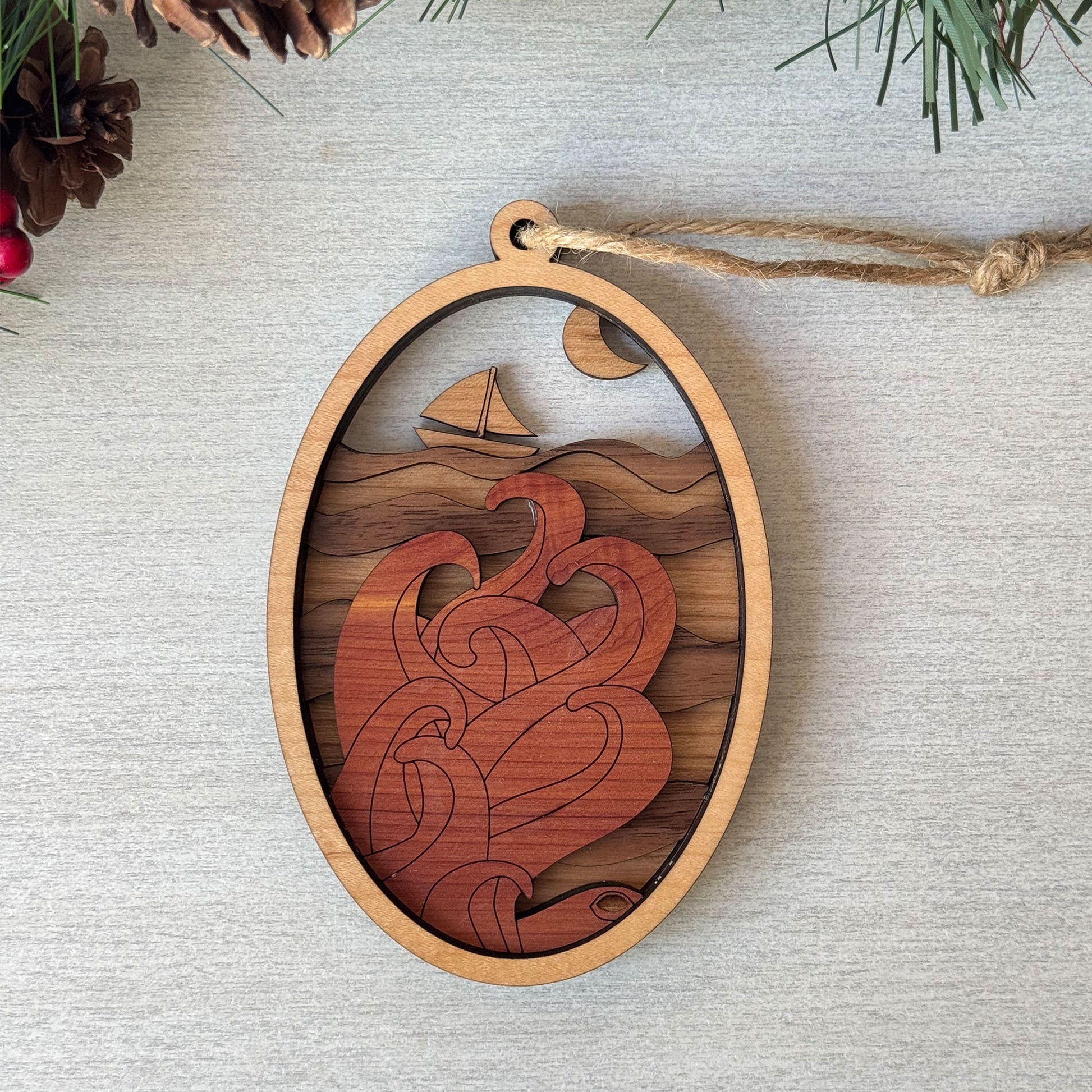 Wood Octopus Ornament | Handcrafted Coastal Christmas Décor
