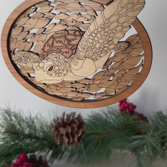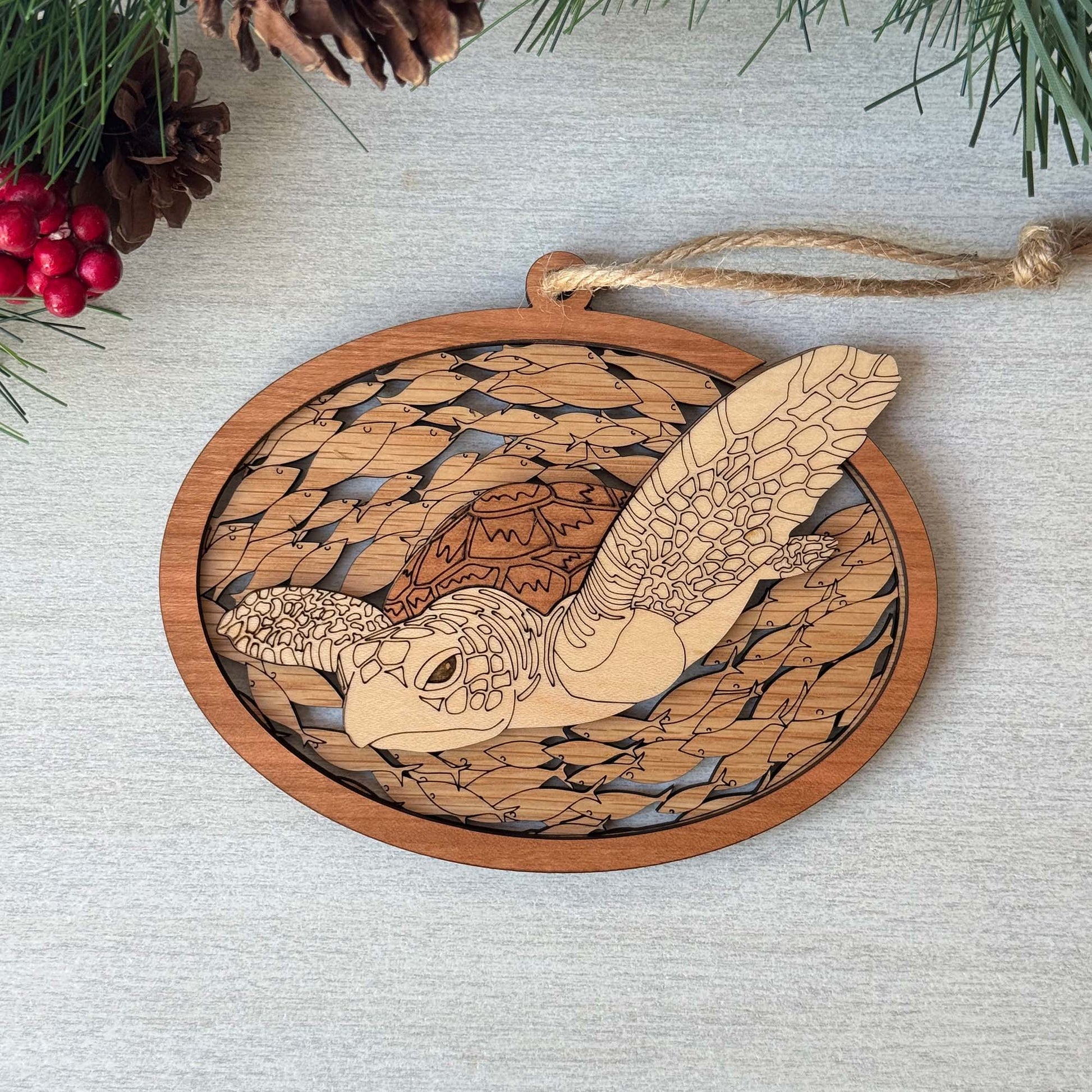 Wood Sea Turtle Ornament | Handcrafted Coastal Christmas Décor